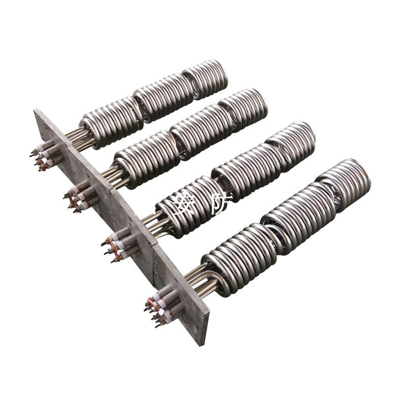 法蘭電熱管(也稱插入式電加熱器):是采用U型管狀電熱元件,多支U型電熱管焊接在法蘭上集中加熱,依據(jù)加熱不同介質(zhì)設(shè)計規(guī)范,按照功率配置要求裝配在法蘭蓋上,插入需加熱物料中,發(fā)熱元件工作時所發(fā)出的大量熱量傳導(dǎo)給被加熱介質(zhì)使介質(zhì)溫度升高,達(dá)到所需的工藝要求,主要用于敞開式、封閉式的溶液箱和循環(huán)系統(tǒng)中加熱用。