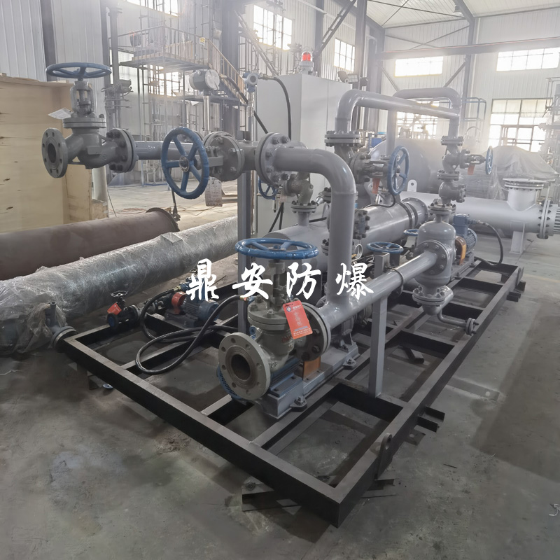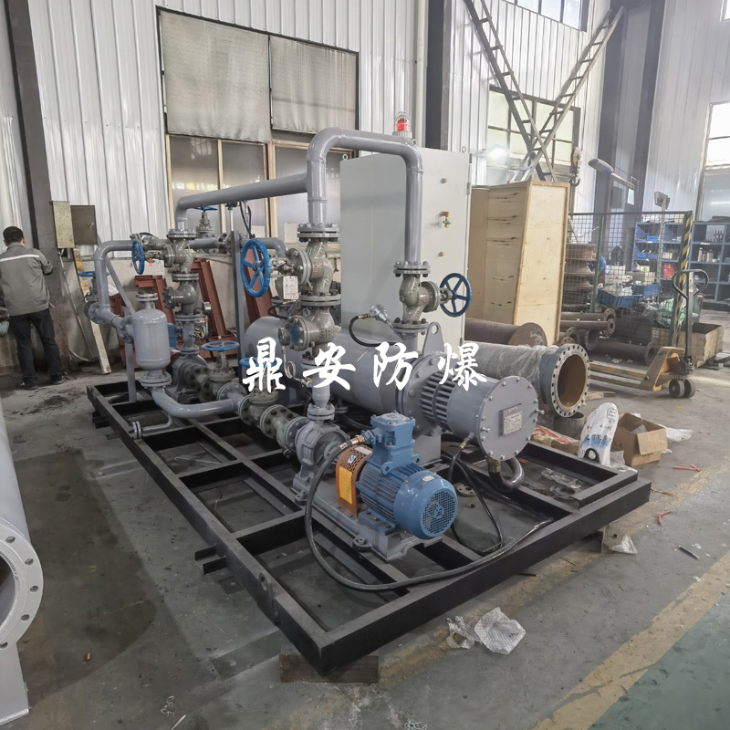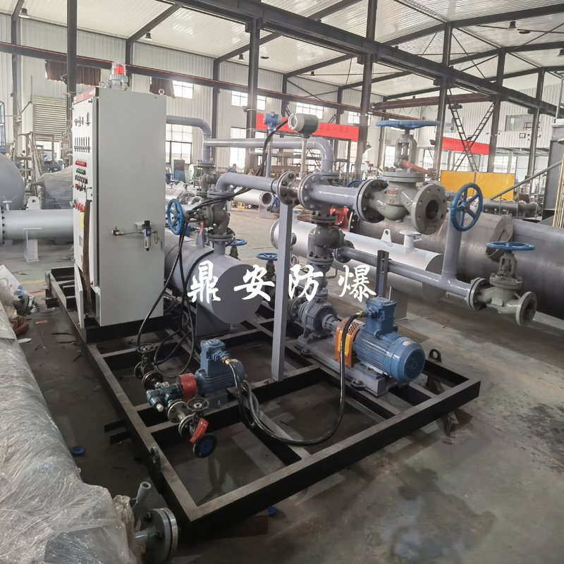 導熱油加熱機組(又稱電加熱導熱油爐)由防爆電加熱器、有機熱載體爐、換熱器(可配置)、控制柜,熱油泵、膨脹槽等組成一個整體的系統(tǒng),用戶只需要接入電源、介質(zhì)的進出口管道法蘭及一些電氣接口即可使用。具有完備的運行控制和安全監(jiān)測裝置,能實行自動化控制。能在較低的運行壓力下獲得較高的工作溫度。