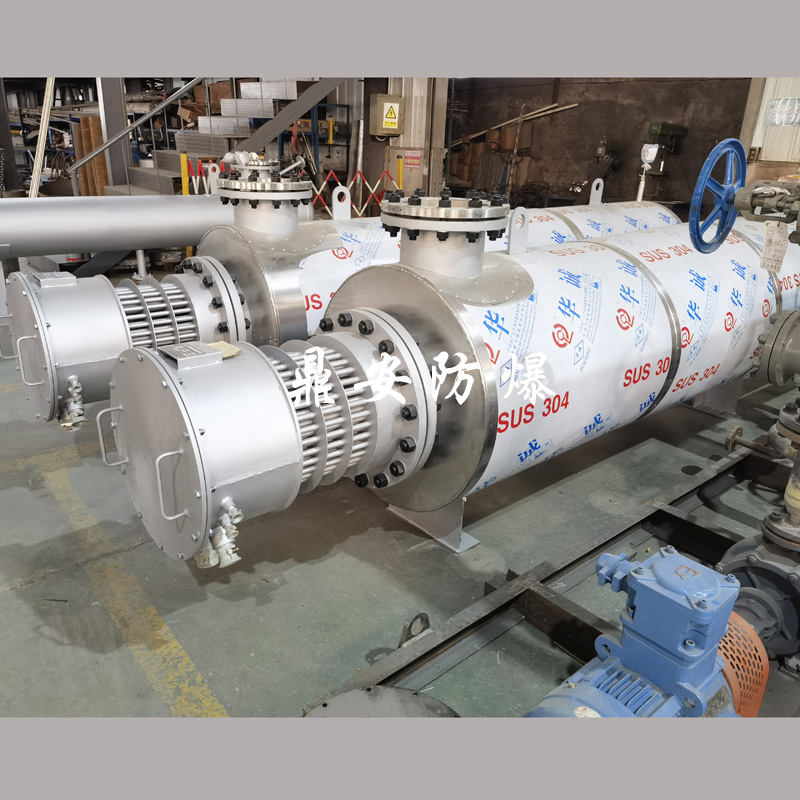 防爆電加熱器是一種國際流行的高品質(zhì)長壽命電加熱設(shè)備。用于對流動的液態(tài)、氣態(tài)介質(zhì)的升溫、保溫、加熱。當(dāng)加熱介質(zhì)在壓力作用下通過電加熱器加熱腔,采用流體熱力學(xué)原理均勻地帶走電熱元件工作中所產(chǎn)生的巨大熱量,使被加熱介質(zhì)溫度達(dá)到用戶工藝要求。