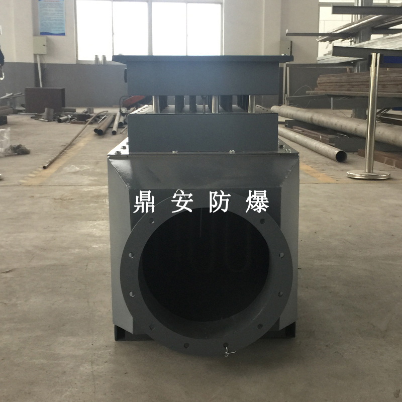 風道式加熱器主要用于風道中的空氣加熱,規格分為低溫、中溫、高溫三種形式,在結構上的共同之處是采用鋼板支撐電熱管以減少電熱管的振動,接線盒中都裝有超溫控制裝置。另在控制方面除裝有超溫保護外,還在風機與加熱器之間加裝聯運裝置,以確保電加熱器起動必須在風機起動之后,在加熱器前后加一差壓裝置,以防風機故障,通道加熱器加熱的氣體壓力一般不應超過0.3Kg/cm2,如需超過以上壓力,請選用循環式電加熱器;低溫型加熱器氣體加熱溫度不超過160℃;中溫型不超過260℃;高溫型不超過500℃。